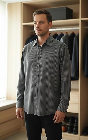 Новая стильная, качественная рубашка, размер 44-46 (наш). Ошиблись с размером, продаю дешевле, чем покупали. Забрать можно в 4 мкр