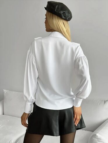 Белая женская рубашка свободного кроя, выполненная в классическом