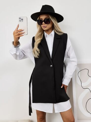Женский комплект в белом цвете: двубортный пиджак + плиссированная юбка из фатина с акцентом на талию,есть ремень, на тойчики классно будет👍 Покупала себе с доставкой, не угадала с размером, абосл...
