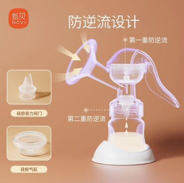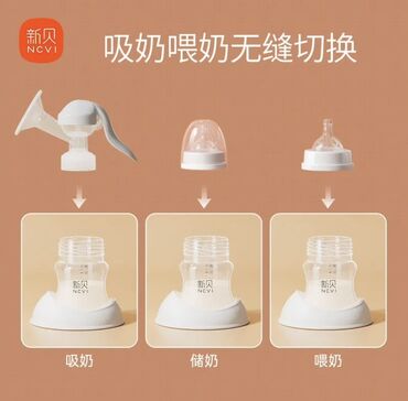 Ручной молокоотсос от NCVi в компактной упаковке. Предназначен для сцеживания грудного молока. Конструкция включает в себя воронку, резервуар для сбора молока и ручку для создания вакуума. Удобен для использования дома и в поездках.