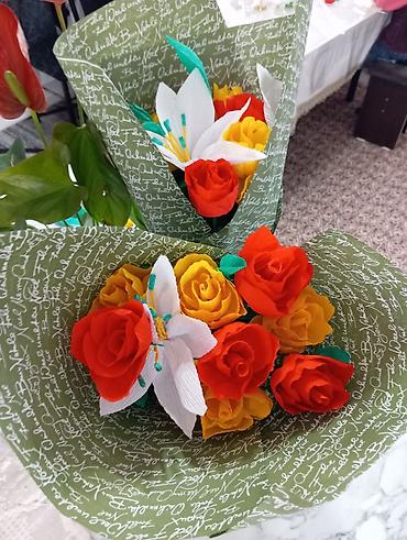 Ручные цветы из креп-бумаги (креативный декор) - Композиция: 2