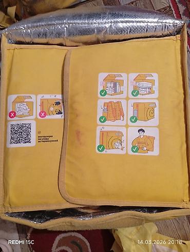 Термосумка‑рюкзак курьера Яндекс Go для доставки еды. - Формат: жесткий изотермический бокс с верхней откидной крышкой на липучке. - Цвет и брендинг: желтый с черным логотипом Яндекс Go и изображе...1 800 KGS