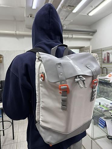Городской рюкзак Xiaomi - Дизайн: минимализм в светло‑серо‑белой гамме с яркими оранжевыми акцентами, верхний клапан на двух застёжках, логотип mi. - Материал: плотный водоотталкивающий верх (эко‑...