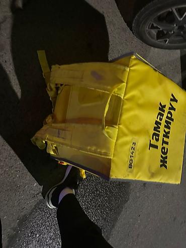 Терморюкзак/сумка для доставки еды Яндекс Go. - Формат: кубический термобокс для курьеров - Цвет: ярко‑жёлтый с чёрными логотипами «Яндекс Go» и надписью «Тамак жеткирүү» - Маркировка: BG1690 на н...