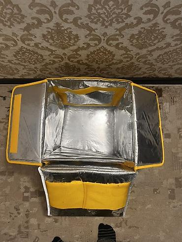 Терморюкзак курьера Яндекс Go - Формат: короб-рюкзак для доставки еды - Цвет и брендинг: ярко‑желтый с логотипом «Яндекс Go» и надписью «Тамак жеткирүү» - Конструкция: жесткий каркас, крышка на ли...