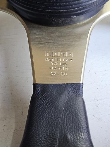 - Материалы: кожаный обод с комбинированной фактурой (гладкая и перфорированная кожа) для улучшенного хвата; трехспицевая алюминиевая основа с золотистым анодированием