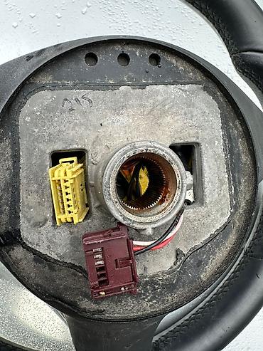 - Разъёмы сзади: жёлтый (airbag), коричневый/бордовый многоконтактный и питание кнопок