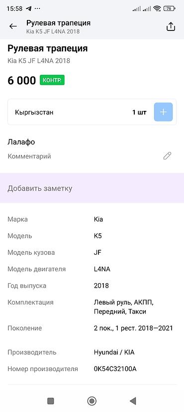 Совместимость уточняйте по VIN и номеру 0K54C32100A для Kia K5 (JF) 2018–2021 с двигателем L4NA.