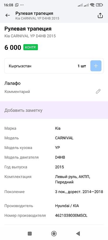 Kia Carnival 2018 2.2 CRDi D4HB — авторазбор, контрактные оригинальные