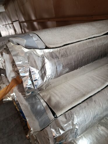 5. Звукоизоляция. Рулон 10кв.м. 3 слоя: фольга, битумная мембрана, искусственный войлок. 3200 сом за рулон.