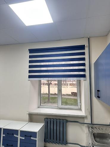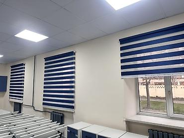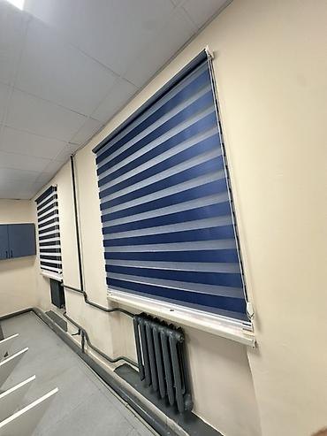 Рулонные шторы «день‑ночь» (зебра), горизонтальные полосы темно‑синего