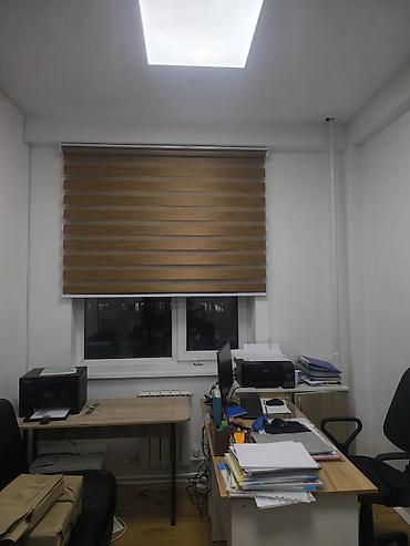 - Тип: тканевые рулонные шторы с чередованием прозрачных и плотных полос.