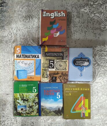 Школьные учебники (КР/РУ): - Английский язык, 8 класс — 180 - Алгебра, 8 класс — 100 - Литературное чтение, 6 класс — 170 - Кыргыз адабияты, 5 класс — 150 - Английский язык, 5 класс — 150 - Алгебр...