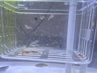 - Молодые активные рыбки, окрас начинает проявляться: светлое тело, тёмные хвостики, перламутровый отблеск на боках.