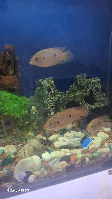На фото — реальный внешний вид и окраска в аквариуме с декором, грунтом и аэрацией. Отличный выбор для тех, кто ищет ярких, эффектных цихлид с «жемчужным» узором.