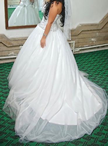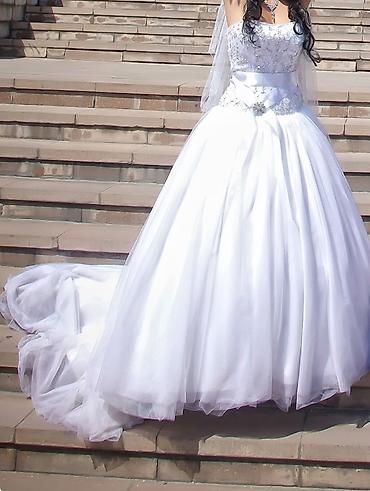 Свадебное платье новое размер ХS S M - Цвет: белый. - Силуэт: прямой/умеренно приталенный. - Длина: в пол, со шлейфом. - Ткань: кружево и сетка с рассеянным бисерным/жемчужным декором по всему по...