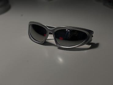 Спортивные солнцезащитные очки - Оправа: обтекаемая, массивная, серебристого цвета, полуобхватывающая форму для плотной посадки. - Линзы: тёмные зеркальные, цельные по каждой стороне, обеспечивают...