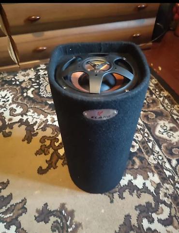 Сабвуфер KLANG в цилиндрическом корпусе с встроенным автомобильным усилителем.