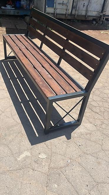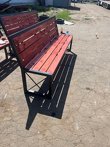 Прочная скамья с деревянным сиденьем и спинкой на металлическом