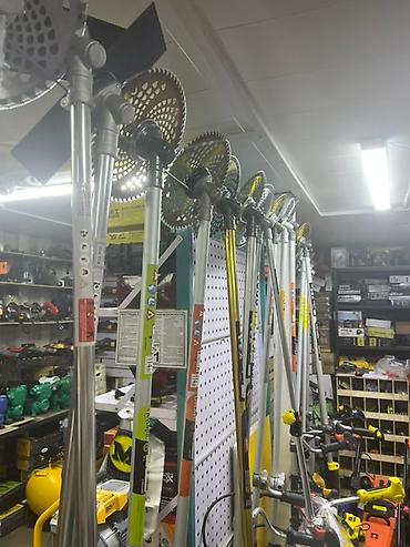 - Мотокосы разной мощности с праймерами, стартером «легкий пуск», прозрачными топливными баками.