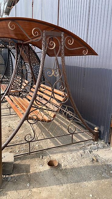 - Двухместное подвесное сиденье из натурального дерева с анатомическими ламелями; подлокотники из дерева.
