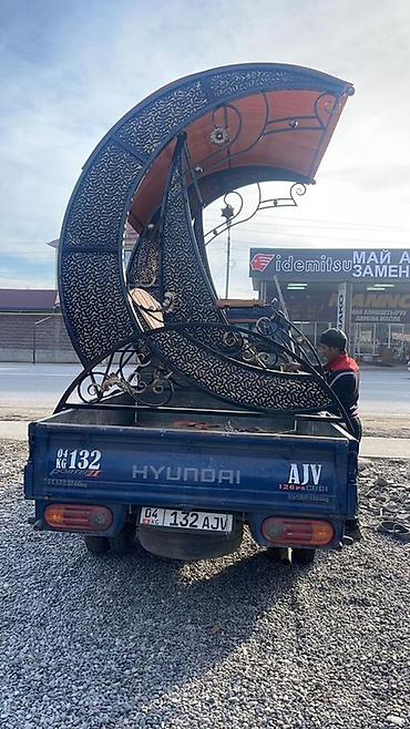 - Большой изогнутый навес из поликарбоната/металла с теплым коричневым оттенком — защита от солнца и осадков.
