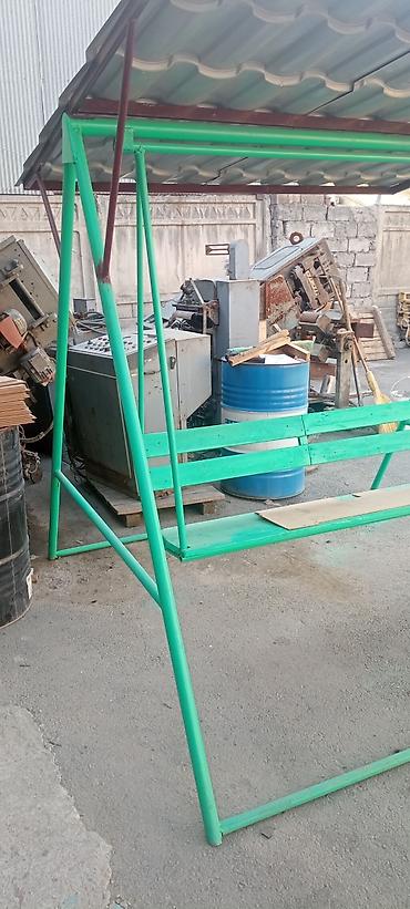 - Конструкция: прочная металлическая рама из круглой трубы с треугольными распорками и нижней поперечной стяжкой для устойчивости.