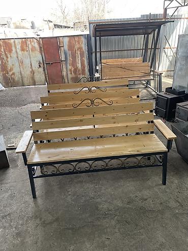 Металлические садовые качели со скамьей - Конструкция: прочная сварная рама из стального профиля с опорой на продольные полозья для устойчивости. Подвес на поперечной перекладине. - Сиденье: широк...