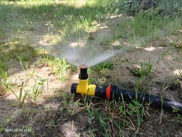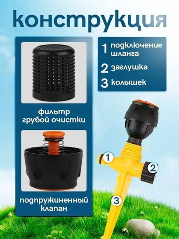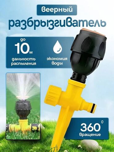 ЖелтыйСадовый дождеватель с поворотом до 360°.