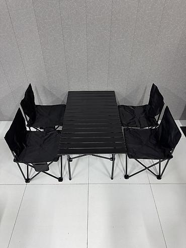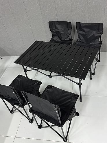 1 Стол 4 стул Складной кемпинговый стол - Материал столешницы: алюминий с реечной конструкцией — устойчив к влаге, легко очищается. - Каркас: стальные трубки с перекрестными распорками для жестк...