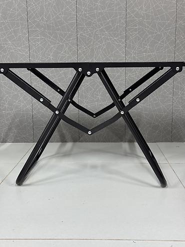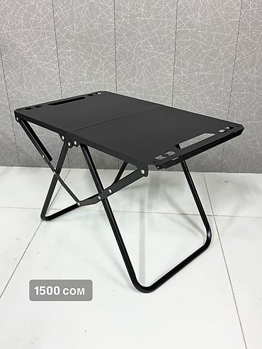 - Компактный переносной стол с металлической столешницей и прочной рамой.