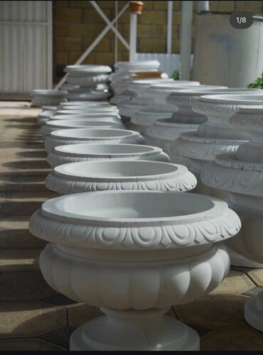 Набор декоративных цветочных горшков и вазонов, выполненных в классическом стиле. В комплекте представлены изделия различных форм и размеров, включая круглые горшки на постаментах и продолговатые вазоны. Некоторые экземпляры имеют рельефные узоры по краям, добавляющие изделиям изысканности. Доступны в двух основных цветах: светло-бежевом и белом, что позволяет легко вписать их в любой интерьер или ландшафтный дизайн. Идеально подходят для украшения садов, террас, внутренних двориков или помещений, создавая уютную и элегантную атмосферу. Прочные и устойчивые, эти вазоны предназначены для длительного использования на улице и в помещении.