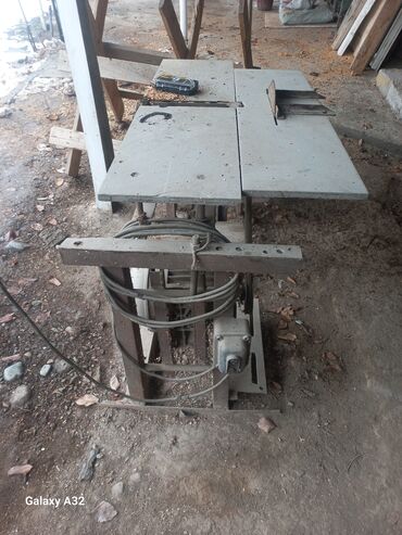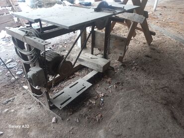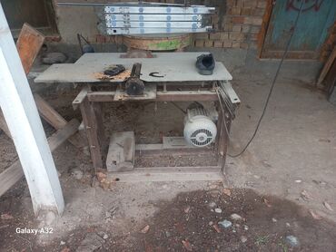 Станок циркулярный стационарный (самодельный/мастерской формат) - Тип: настольная циркулярная пила на металлической раме. - Стол: стальной, крупный рабочий стол с продольными пазами и направляющим...