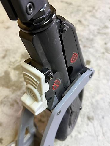 - Конструкция: складной механизм с фиксатором безопасности (виден белый замок возле вилки), удобное быстрое складывание для переноски и хранения.