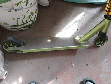 - Окраска: зелёная дека и вилка, чёрный руль, золотистый хомут, колеса зелёные с чёрными протекторами.