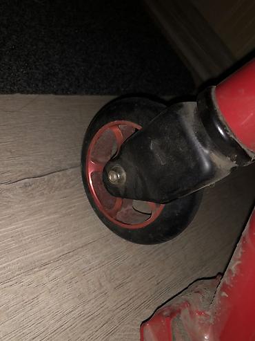 - Колёса полиуретановые, переднее и заднее одинакового диаметра, с металлическими красными ступицами.