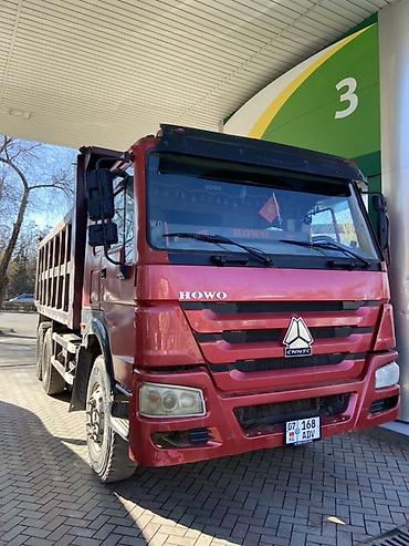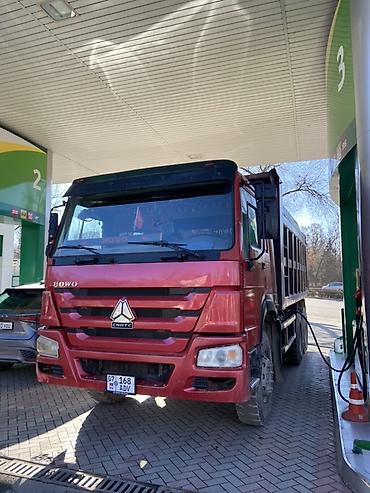 Номер на кузове/шильдик: HOWO, бренд CNHTC. Цвет – красный. Регистрационный знак виден на фото.