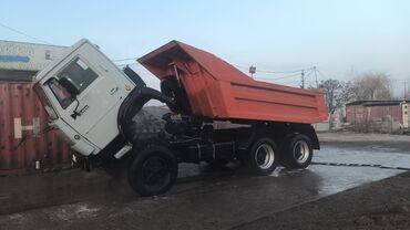 Самосвал КАМАЗ 6x4 (трехосный), с гидроподъемом кузова. Характеристики и особенности: - Конфигурация: задняя разгрузка, усиленный стальной кузов с высокими бортами и надставками. - Привод и шасси:...