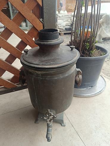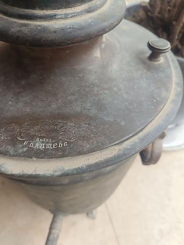 - Комплектация по фото: корпус самовара с крышкой, кран, боковые ручки, основание-«лапки». Труба и поддувальные принадлежности не видны.