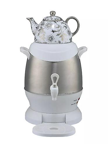 Самовар, который работает от электричества, совмещает в себе преимущества электрического чайника, термопота и заварочного чайника. Благодаря регулятору температуры, вы сможете установить нужную вам температуру от 30° до 100°.