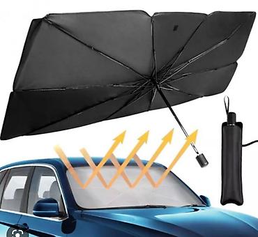 Солнцезащитный Зонт шторка для защиты от солнца для лобового стекла. Козырек выполнен в виде обычного привычного нам зонта - но в раскрытом виде он идеально ложится под лобовое стекло - закрывая и отбивая при этом солнечные лучи, что поможет избежать вредного воздействия ультрафиолета на внутреннюю обшивку автомобиля, понизить температуру в салоне.