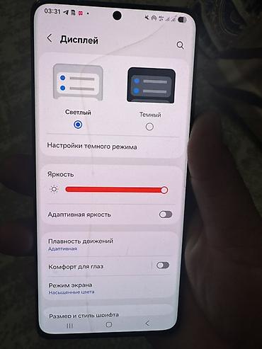 - Большой безрамочный дисплей с вырезом под фронтальную камеру по центру сверху. Поддерживаются светлая/тёмная темы, адаптивная плавность движения, режим «Комфорт для глаз», насыщенные цвета экрана, регулировка яркости и адаптивная яркость.