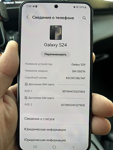 - Интерфейс One UI с разделом «Сведения о телефоне» — устройство определяется как Galaxy S24.