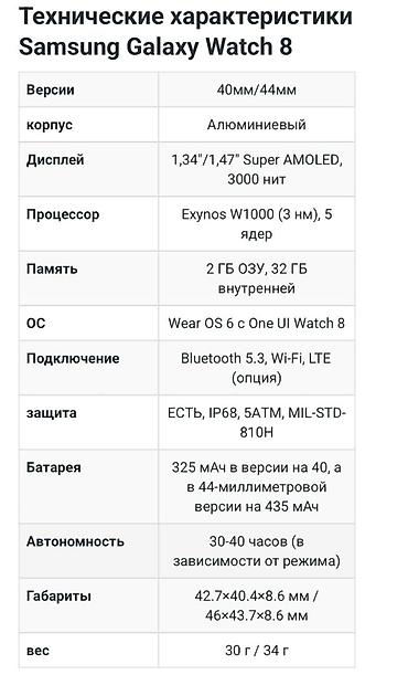 Samsung Galaxy Watch 8 (Bluetooth) Ключевые особенности: -