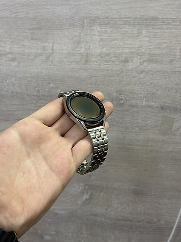 Умные часы с круглым сенсорным дисплеем и вращающимся безелем. Корпус из нержавеющей стали, стальной многозвенный браслет с раскладывающейся застёжкой. На задней крышке — оптический датчик сердечного ритма и контактная площадка для магнитной зарядки. Управление кнопкой и вращающимся ободком, поддержка уведомлений со смартфона, трекинг активности и сна, подсчёт шагов, мониторинг ЧСС, режимы тренировок. Совместимы со смартфонами по Bluetooth, стандартный размер крепления ремешка (легко заменить на другой). Стильный классический дизайн, подходят для повседневной носки и спорта.