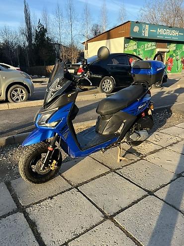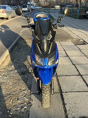 Макси танк самурай н З к макс м8Скутер 50 см³, с ярким спортивным дизайном в синем цвете.