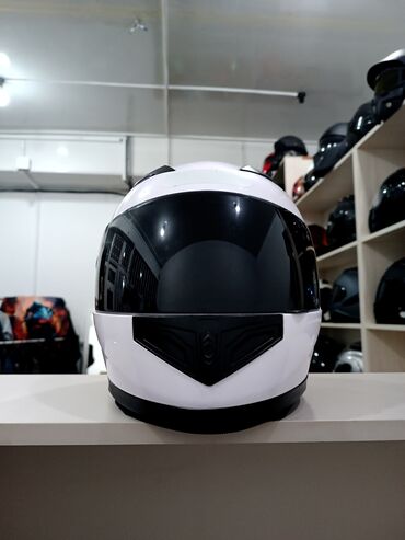 Зимний шлем с тёплым воротником, прозрачный визор обеспечивает хорошую видимость в любое время суток. Идеально подходит для курьеров. Магазин "МОТОХАБ" город Бишкек, ул. Баялинова 138. `