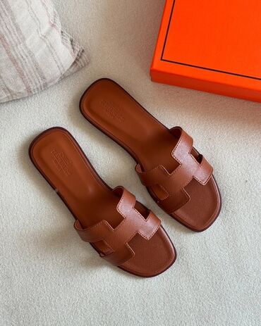 Кожаные коричневые сандалии Hermes плоской подошвой. Эти удобные сандалии с характерным дизайном в виде буквы «H» идеально подходят для повседневной носки. Классический стиль и качественные материалы обеспечивают комфорт и элегантность.