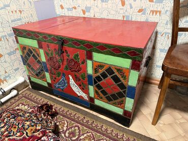 Сандык жыгачтан. колго жасалган. размер узундуну 100см , туурасы 50, бийиктиги 60см. Баасы 7000с. Акыбалы жакшы.