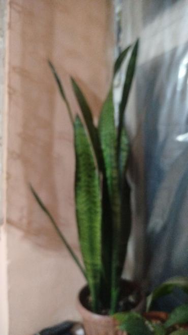 - Вид: сансевиерия трифасциата (высокие мечевидные листья с темно‑зелеными полосами).